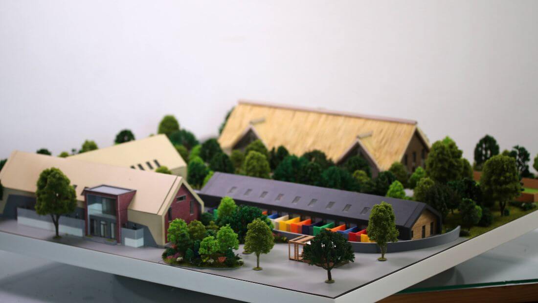 This architectural model represents a thoughtfully designed animal shelter complex, combining functionality, organization, and a natural environment for animal well-being.