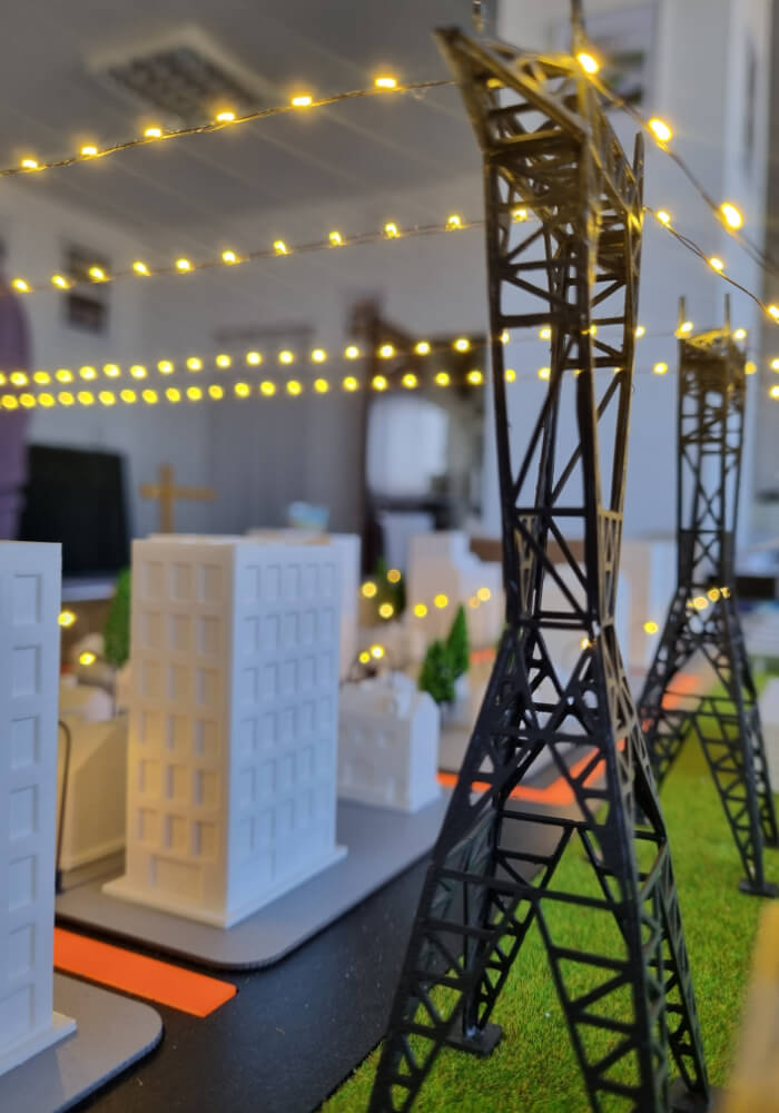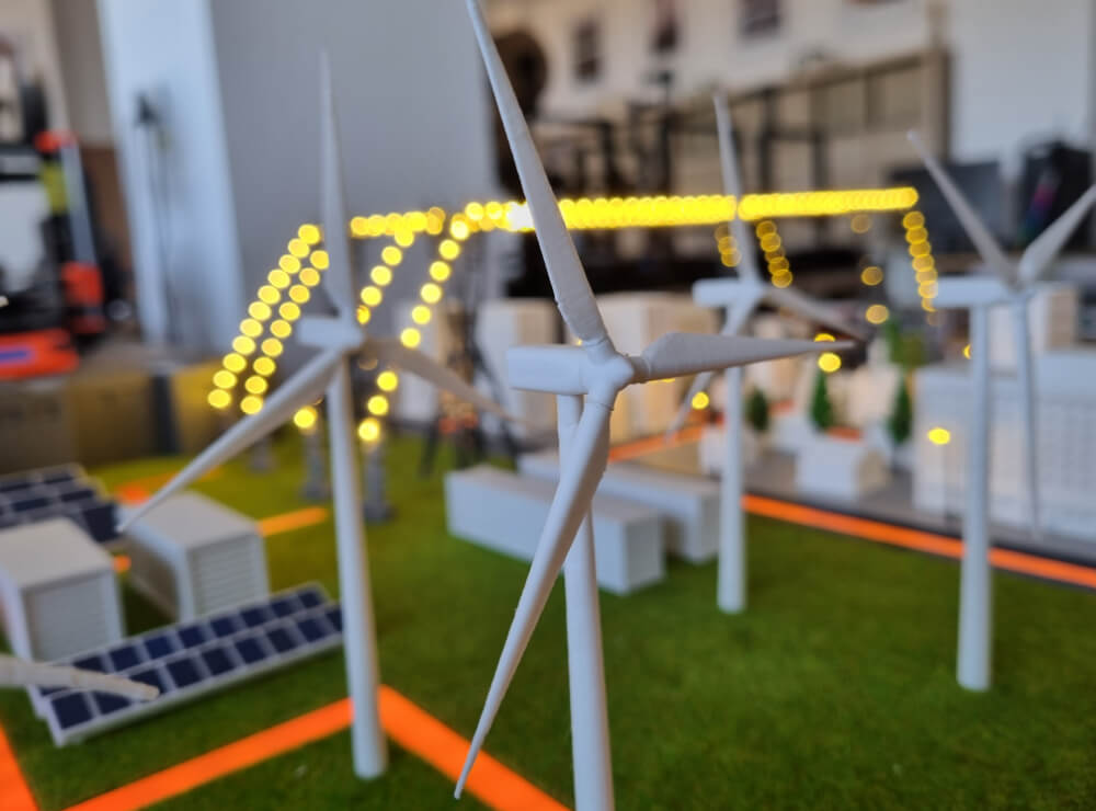 This renewable energy community scale model is a representation of a sustainable energy system designed to showcase how a community can generate, store, and distribute renewable energy efficiently.