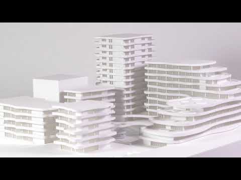 - The residential tower: To the right, a taller, slender tower provides a vertical counterpoint. Its undulating floor plates mirror the smaller wing, maintaining a unified architectural language across the site.