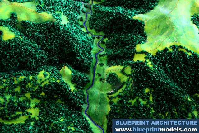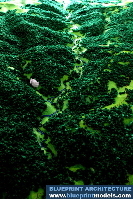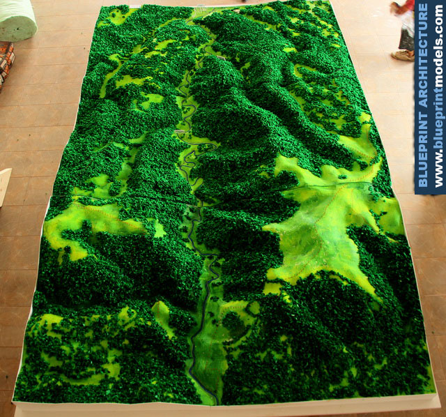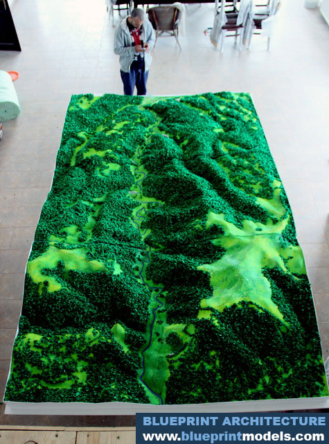 - Scale and detail: The model is impressive in its size and detail, suggesting it was built for a major project, for regional planning, environmental studies, or a large-scale architectural development that integrates with the natural environment.